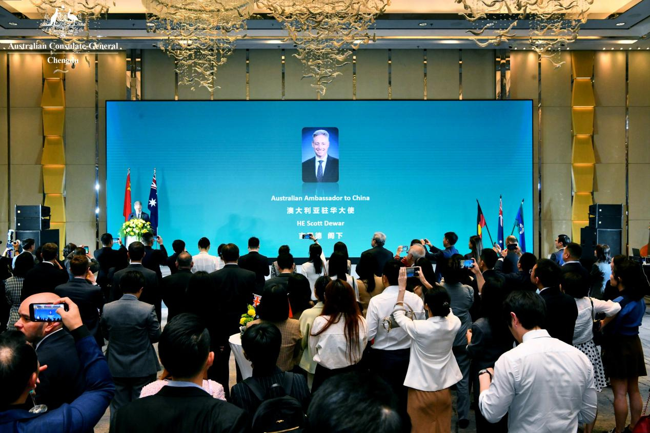 吉思德大使在致辞中提到这是他第一次访蓉,十分高兴感受到成都这座城市的活力,希望通过他的到访和交流加深澳大利亚与中国西南地区的联系。政府官员、商界人士、各国领事馆官员和澳洲校友等近两百位来宾出席了本次招待会。大家齐聚一堂,共同见证这一重要时刻。